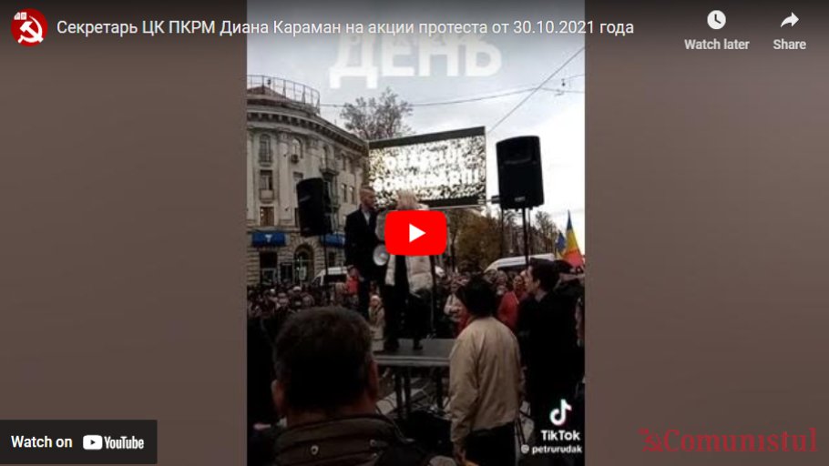 СЕКРЕТАРЬ ЦК ПКРМ ДИАНА КАРАМАН НА АКЦИИ ПРОТЕСТА ОТ 30.10.2021 ГОДА