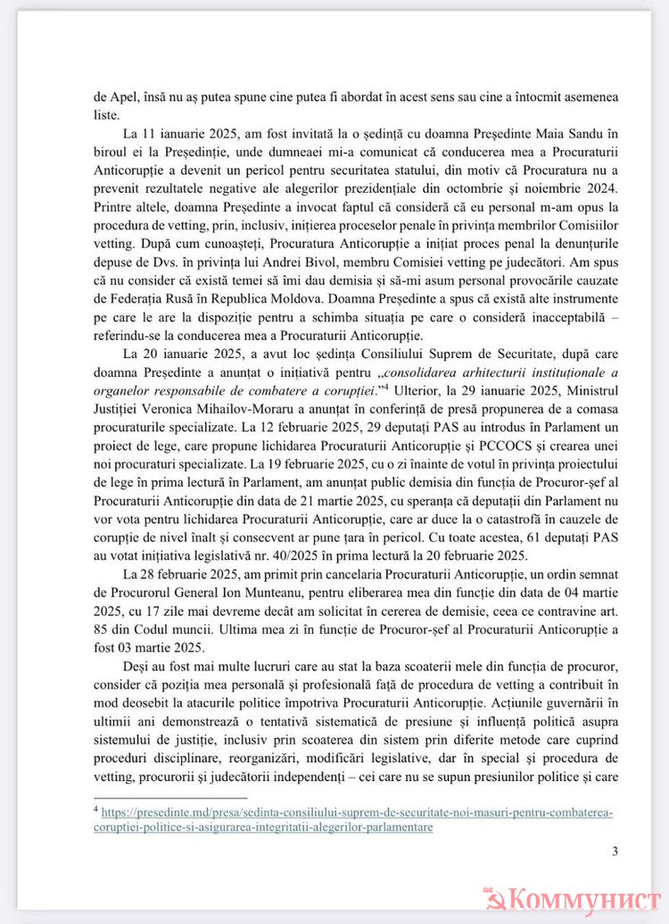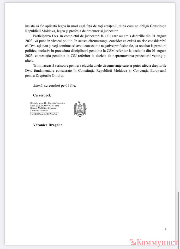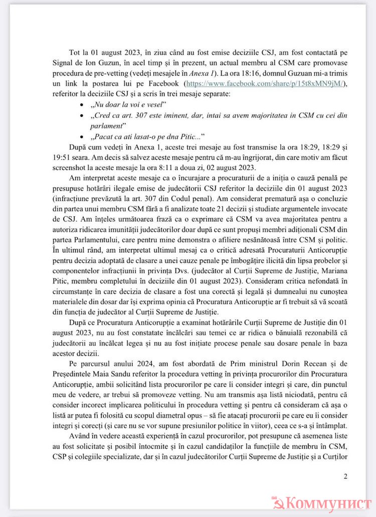 1 августа член ВСМ Ион Гузун написал Дрэгэлин несколько сообщений, что недоволен неготовностью ПА выполнять требования власти по смещению неугодных магистратов;