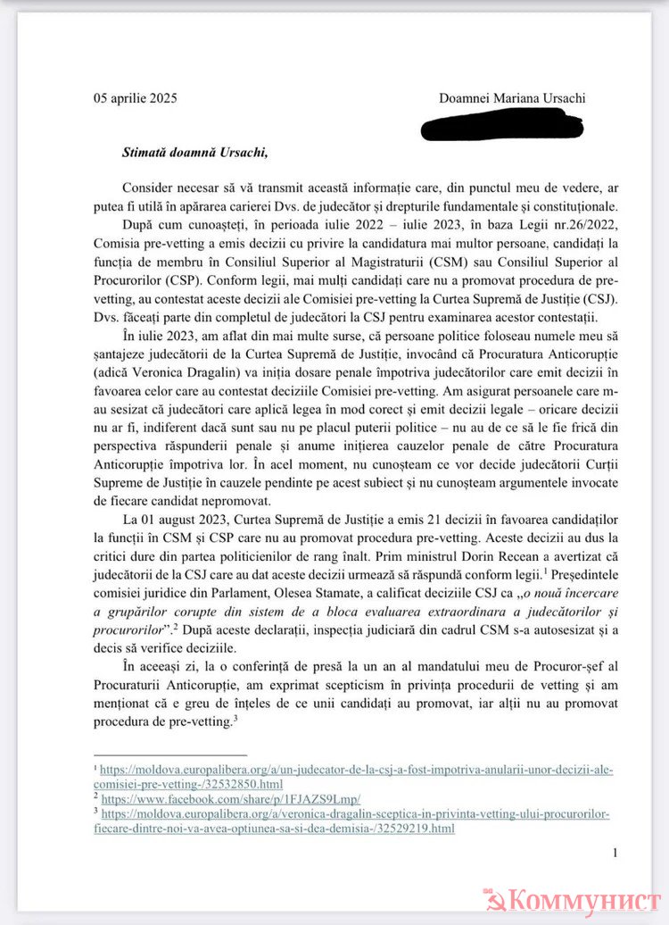 "В июле 2023 года я узнала от разных источников, что политики используют моё имя, чтобы шантажировать судей Высшей судебной палаты, что я якобы возбужу дела против судей, которые будут выносить положительные решения в отношении тех, кто оспаривает веттинг";