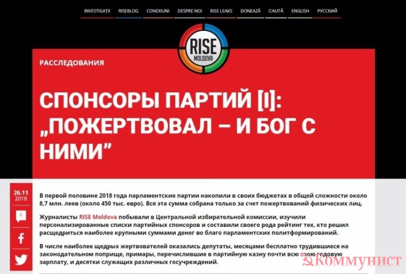 În linii generale, PSRM a primit din partea deputaților și colaboratorilor cabinetului PSRM în Legislativ, în prima jumătate a anului 2018, Partidul Socialiștilor a primit în calitate de donații peste 900 de mii de lei. Totodată, în opinia jurnaliștilor RISE Moldova, ”este de remarcat faptul că în perioada de jumătate de an menționată, liderul PDM, omul de afaceri Vlad Plahotniuc, oficial, nu a cheltuit niciun leu pentru susținerea formațiunii sale”.