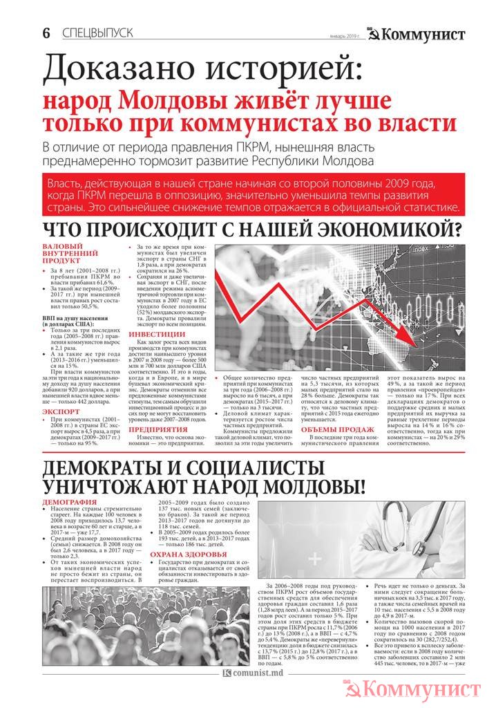 Доказано историей: народ Молдовы живёт лучше только при коммунистах во властиРейтинг статьи: