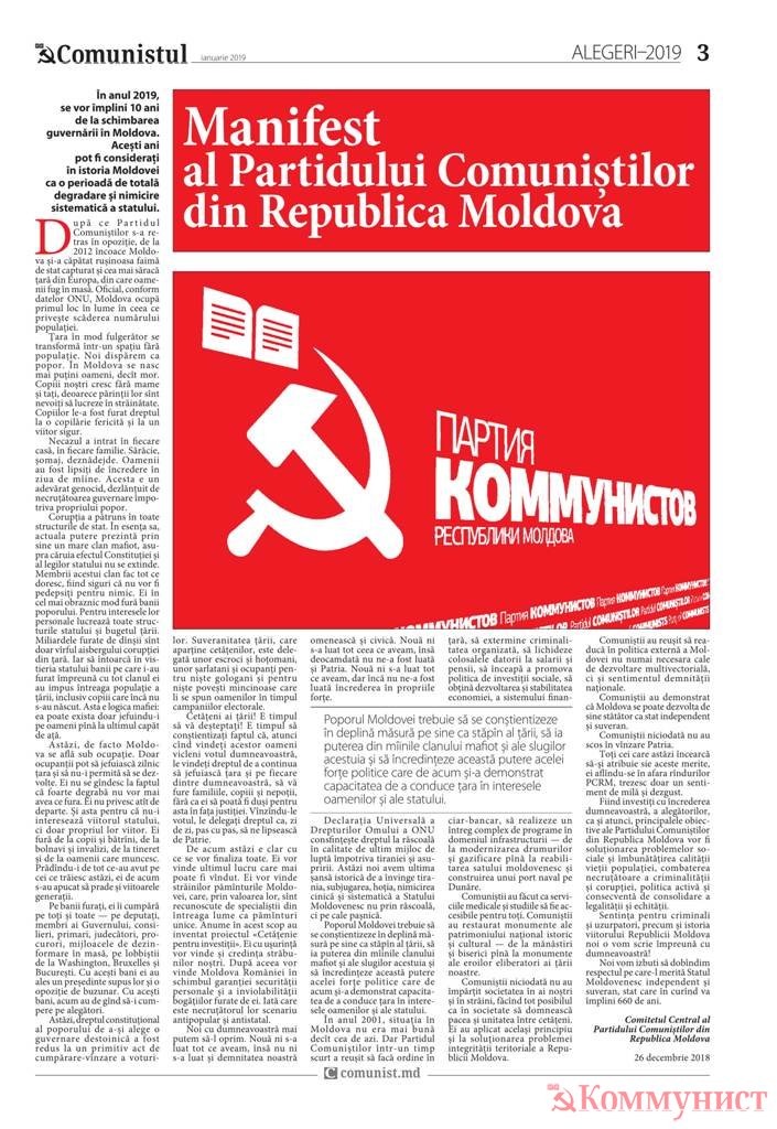 Manifest al Partidului Comuniștilor din Republica MoldovaРейтинг статьи:
