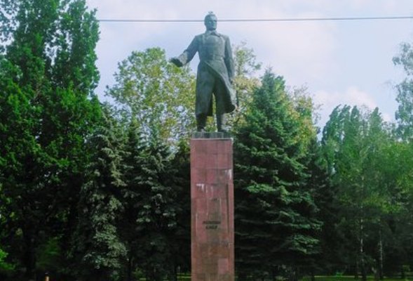 Памятник был установлен в Кишиневе 28 декабря 1982 года на перекрёстке бульвара Дечебал и улицы Сармизеджетуса (в те времена – улиц Тимошенко и Старого, на площади Лазо). В настоящее время постамент находится в аварийном состоянии. Несколько раз городские власти поднимали вопрос о сносе памятника. Одной из причин, почему это не было сделано, предположительно, является инженерная сложность подобного проекта. За всеми этими «потугами» маячит призрак вандализма, которым так любят бравировать современные националисты.