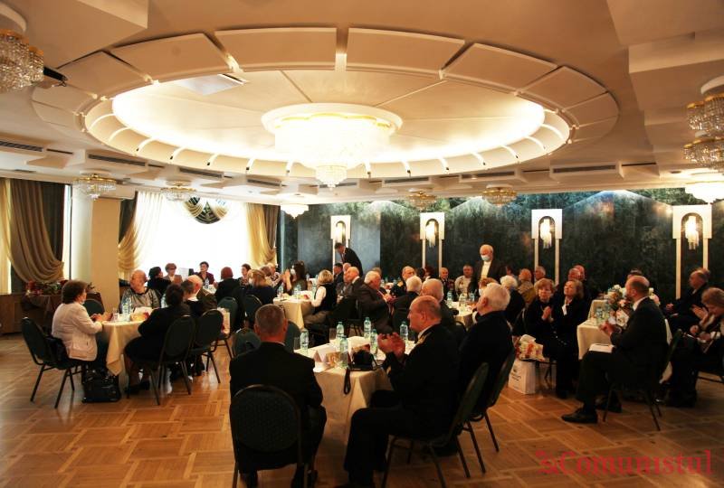 Гостей представила председатель Республиканского совета ветеранов Алла Мироник. Она особо подчеркнула роль председателя ПКРМ Владимира Воронина в деятельности организации, который так же является ее членом. «На всех постах, которые занимал Владимир Николаевич, он оказывал нам помощь различного рода: материальную, моральную, консультативную, поддерживал нас во всех начинаниях». Именно лидер молдавских коммунистов, продолжила Алла Мироник, предложил провести торжественное собрание не в официальном зале, а в неформальной дружеской обстановке в одном из столичных отелей.