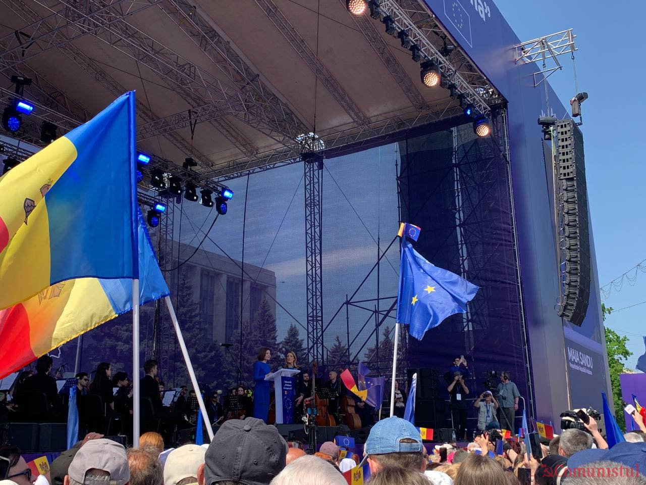 «Сегодня… мы снова собрались здесь всей нацией, чтобы в один голос сказать, что молдаване – европейцы и что через семь лет мы должны стать членами ЕС», – сказала Санду.