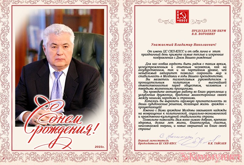 От имени ЦС СКП-КПСС и от себя лично в этот праздничный день примите самые теплые и искренние поздравления с Днем Вашего рождения!