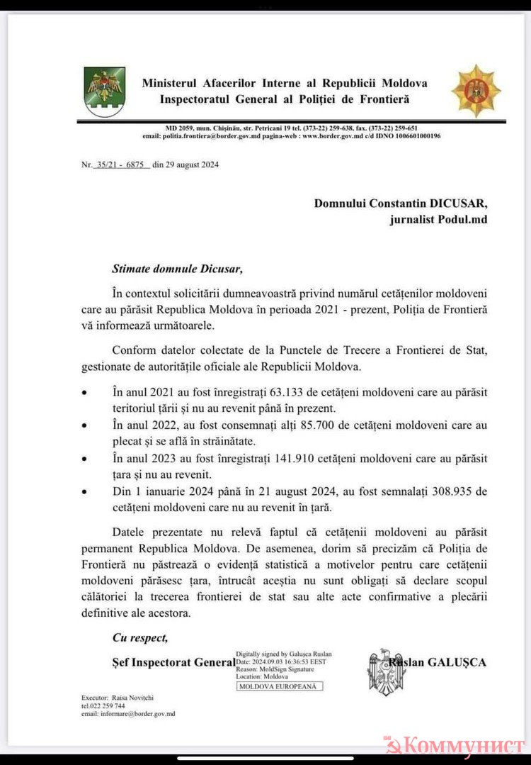 Вообще, как могло получиться, что в период с 1 января по 5 сентября 2024 года Республику Молдова покинули 310 265 молдавских граждан, а вернулись за тот же период 850 198?