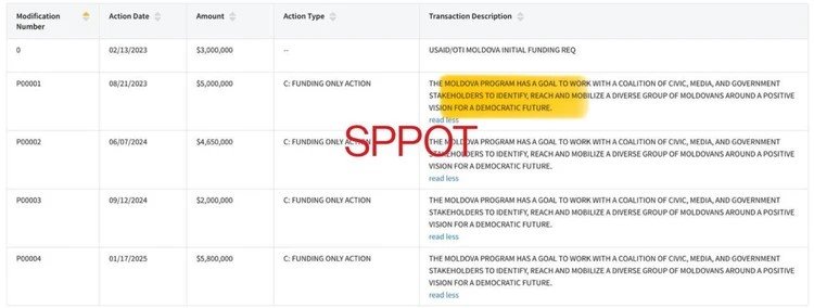 В 2024 году правительство США также выделило 83 602 доллара (около 1,5 млн леев) Фонду Сороса в Молдове, который «поддерживает процесс европейской интеграции» почти 15 лет.